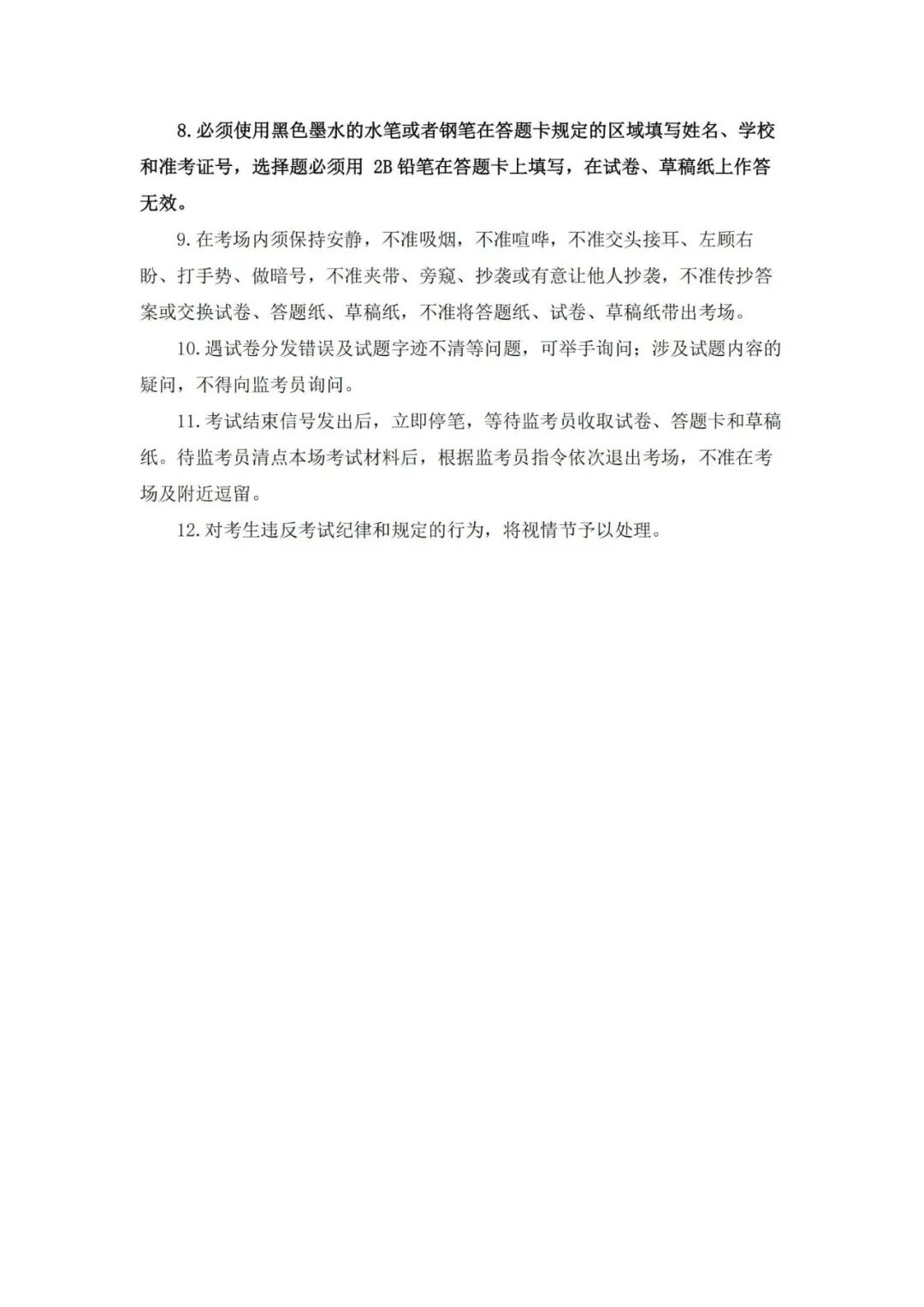 (4)考点会提供候考休息场地。