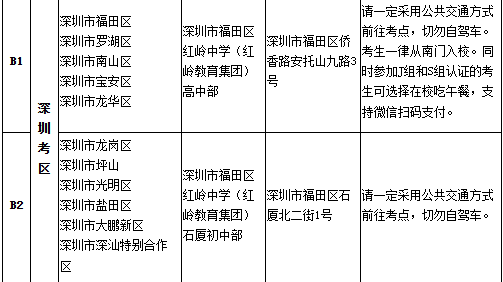深圳考区考生注意啦!本次认证共设有两个考点,分别是深圳市福田区红岭中学(红岭教育集团)高中部考点和深圳市福田区红岭中学(红岭教育集团)石厦初中部考点。