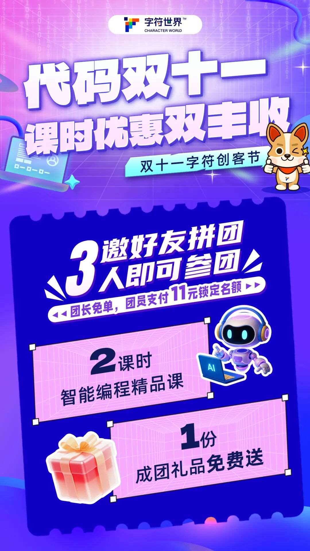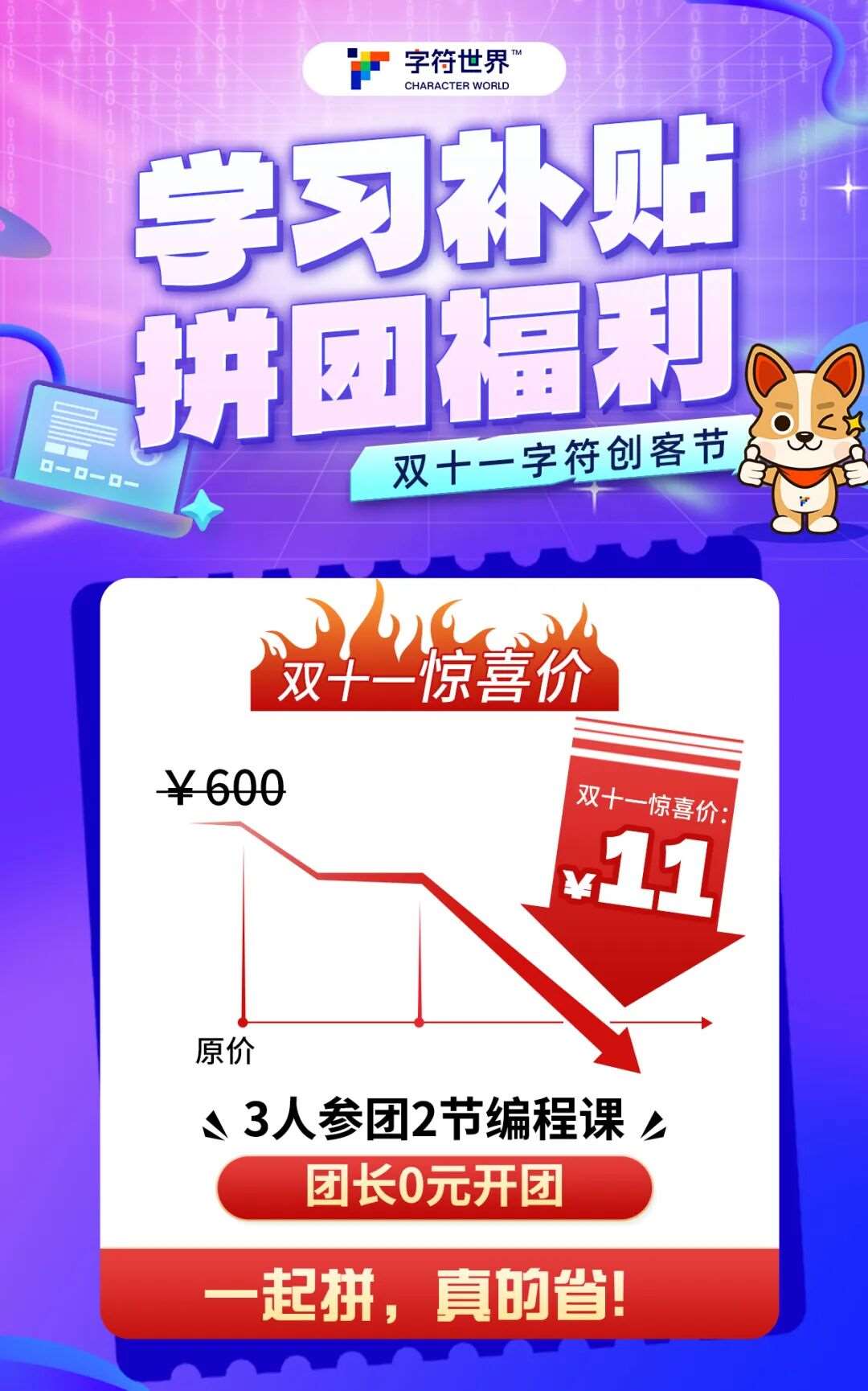 双十一字符创客节,拼团福利等你拿!