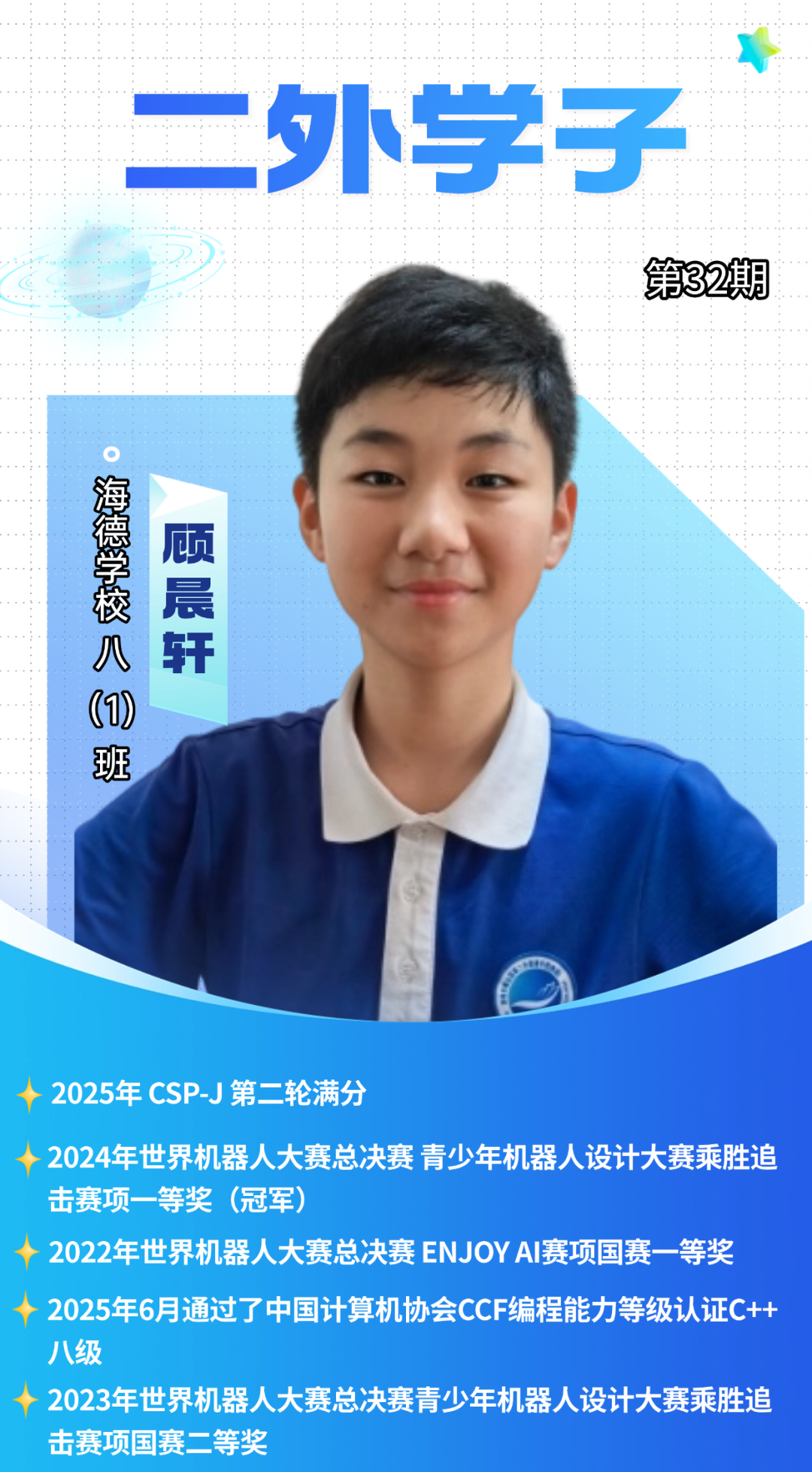 二外学子 | 满分加冕!顾晨轩:CSP-J认证解锁“编程天花板”