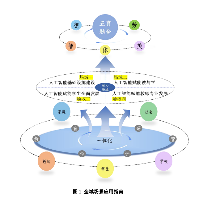 • “1”个总框架:秉持“基于五育、全域覆盖、全场景应用、全链条融通、全要素赋能、全主体育人”的核心理念。