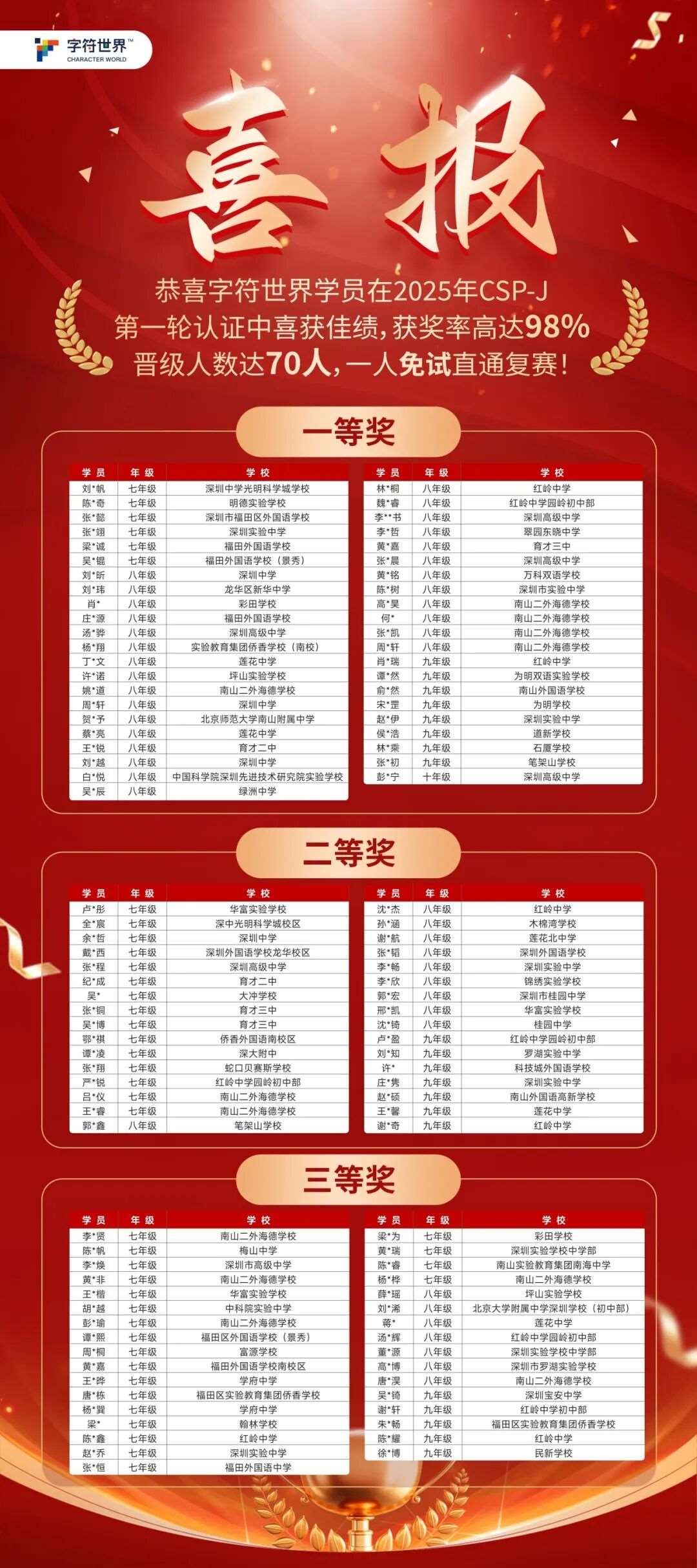 这份荣耀,不仅属于个人,也属于背后默默支持的每一个家庭,更属于字符世界“以赛促学、实战育人”的教学理念。我们相信,每一次比赛的淬炼,都在为他们通向未来科技之路,铺下*坚实的基石。