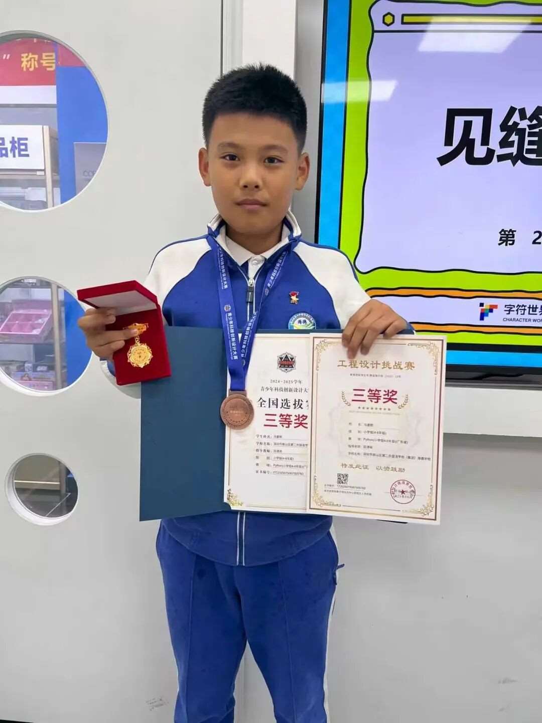 这份热爱与努力,也为他赢得了科创赛场的认可。在2025年WRC工程设计挑战赛中,他凭借扎实的编程功底与创新的设计思路,斩获二等奖;紧接着,在2025年ITC科技创新设计大赛中,他再度发力,荣获三等奖。这份*的背后,离不开他自身的坚持,也离不开多方的助力 —— 冯同学的父母都是科技类人才,为他营造了浓厚的科创氛围,寒假期间,他还能跟随爸爸参与各类科创项目,拓宽视野、积累经验;赛事备战阶段,字符世界的老师为他针对性讲解题型、梳理答题方法,让他在赛场上更加得心应手,从容应战。